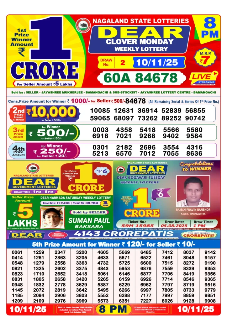 Result for today: Like in Sikkim, the Nagaland State Lottery Results are released officially shortly following each draw. One can rapidly review these findings to determine whether they have won a reward.