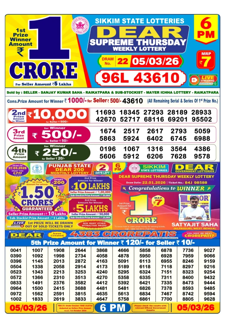 The Nagaland Lottery Sambad reads out the 6 PM lotto results daily. People spend money on tickets to win cash. At 6 PM, the winners are announced. Click on your ticket to see if you won, or return to the store where you got it. It would be cool to win this prize and earn extra money. If you win, read your ticket and follow the steps to get your gift.