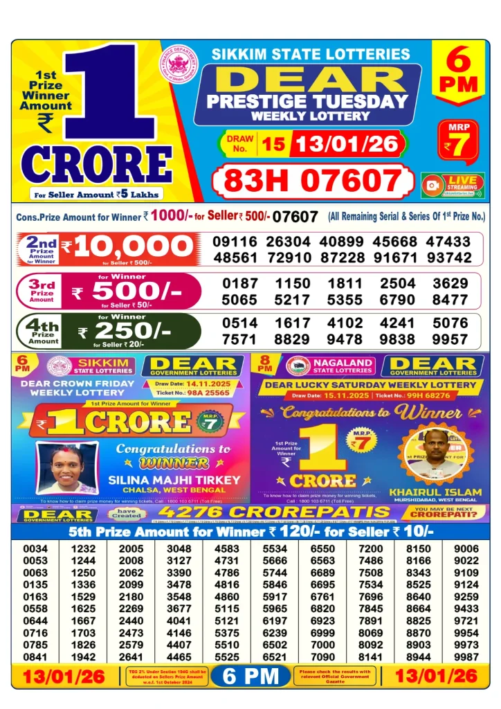 The night draws are declared by the Sikkim State Lottery and they provide highlights of the day result.