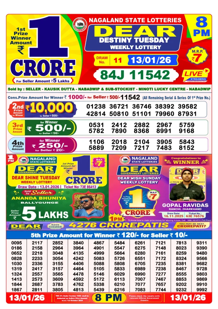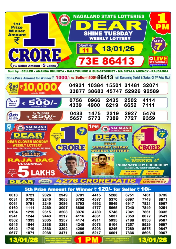 Every morning result is declared by the banner of the Nagaland lottery state and offers a big prize for its users.